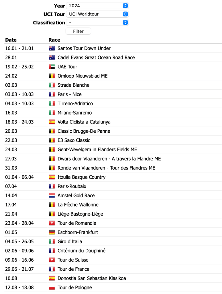 We have made it! The 2024 road season is technically underway, and I’m excited for another dramatic racing season. Why technically? Although the season has started with the Santos Tour Down Under and Cadel Evans Great Ocean Road Race already completed I’m not sure I include those as MY start to the racing season. That distinction is given to the Belgian race Omloop Nieuwsblad. The beginning of the Spring Classics marks the beginning of the racing season for me.