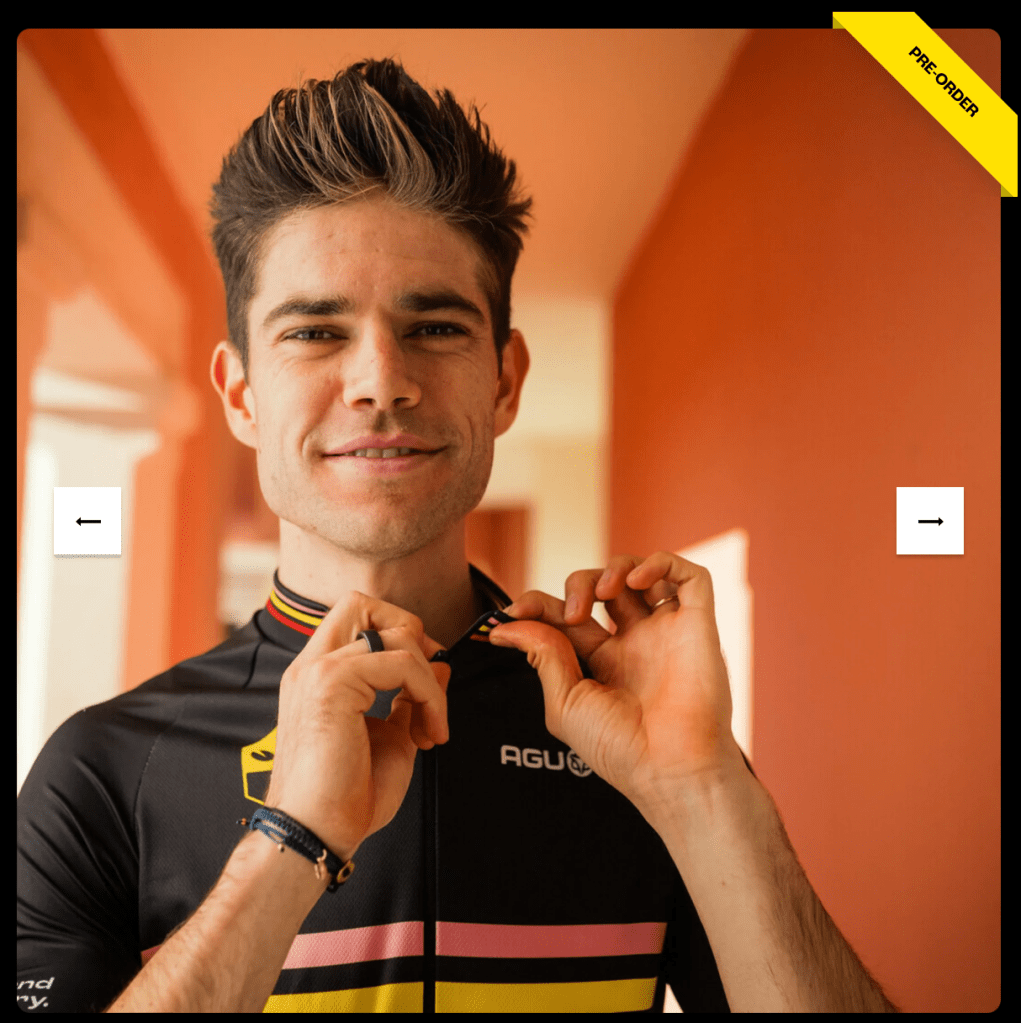 But Kudos to Visma-LAB. For taking a photo of their favorite rider holding the new merch and charging 3X for it: